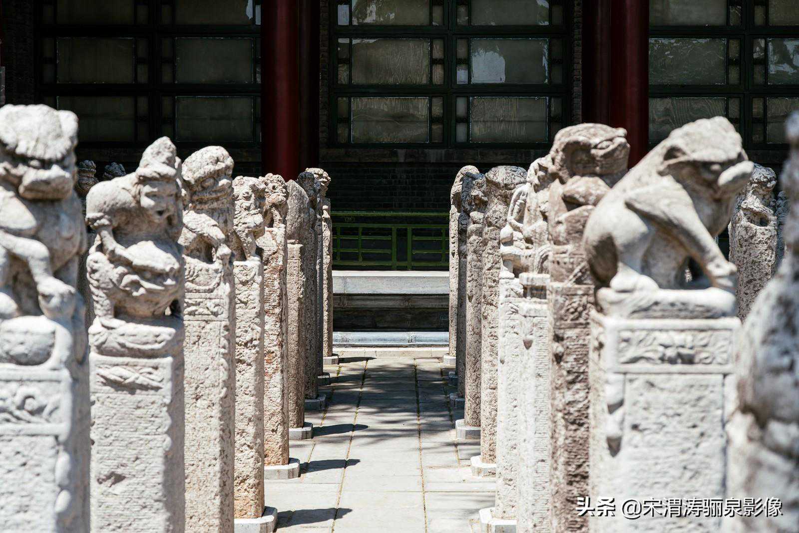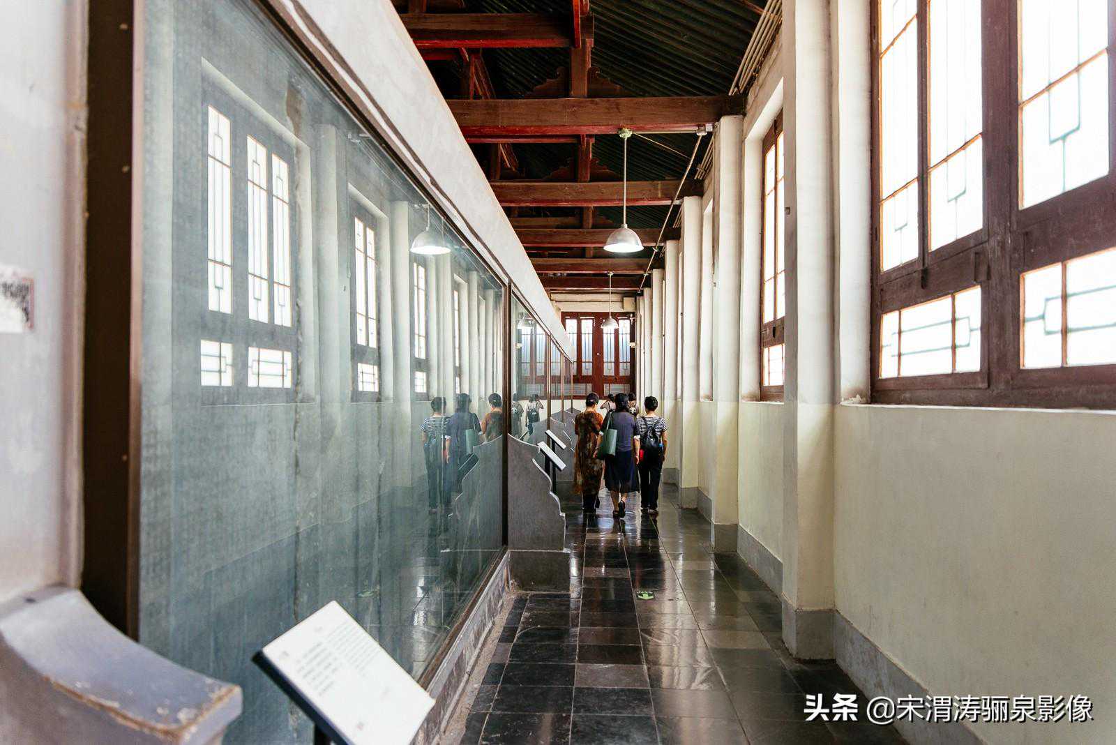 走过碑亭的大院,就来到了碑林的主要陈列地,陈列由碑林、石刻艺术和其它文物展览三部分组成,共12个展室,碑室7座、碑廊8座、碑亭8座,加上石刻艺术室和4座文物陈列室,陈列面积达4900平米。我主要参观了第一、第二、第三展室、拴马桩、石刻艺术展览。