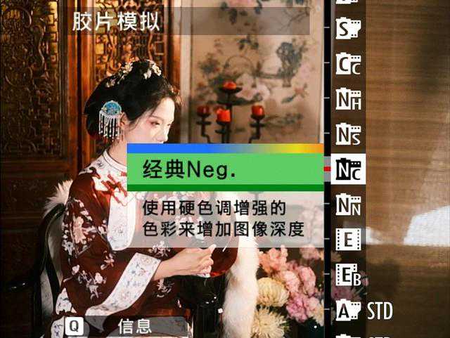 在拍摄古风人像时,我最喜欢使用的就是ClassicNeg.这个胶片模拟模式。它可以提供高对比度的色彩层次,通过在降低饱和度的同时调整亮部和暗部的阴影来增加颜色的深度和清晰度。