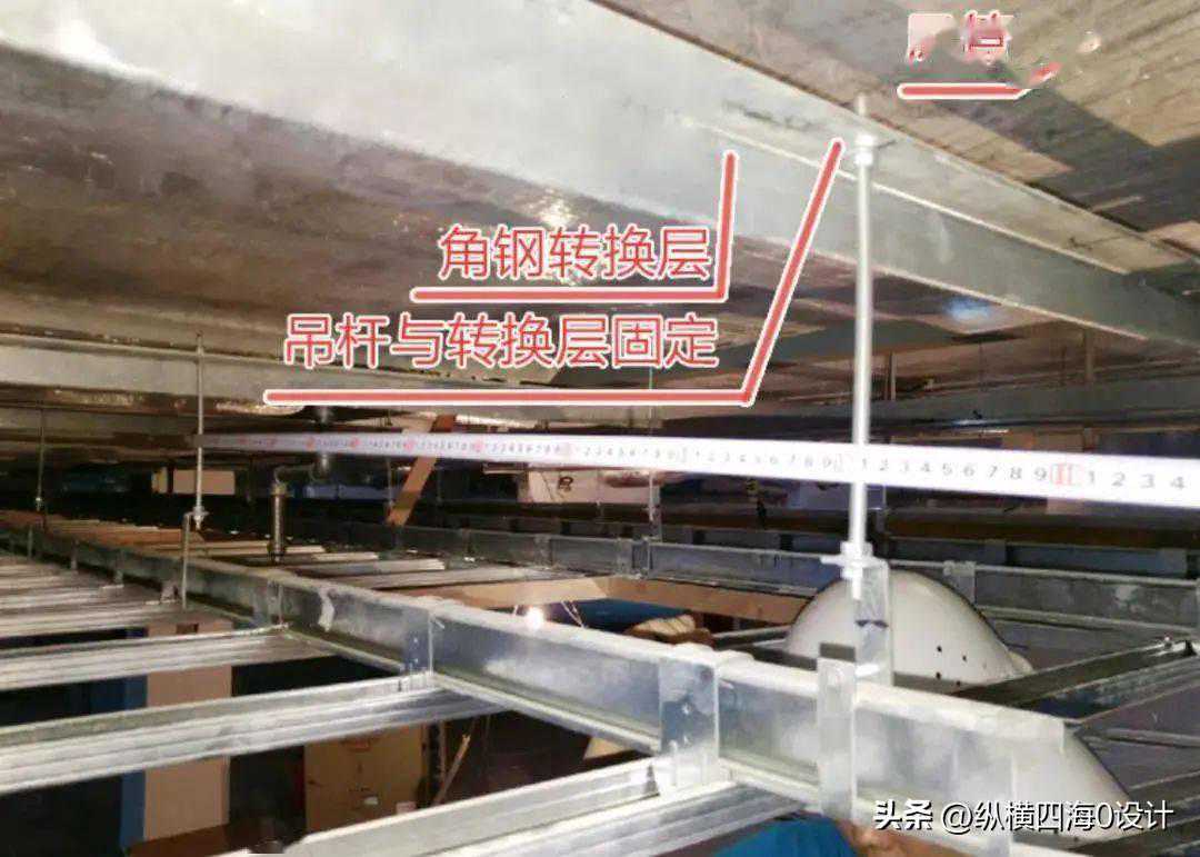 A.反支撑/转换层的做法就是为了让吊杆的长度不大于1500mm,那么转换层的做法也可以做成:吊杆+角钢+吊杆,这种做法相对全钢架转换层更节约成本,实际应用中更灵活
