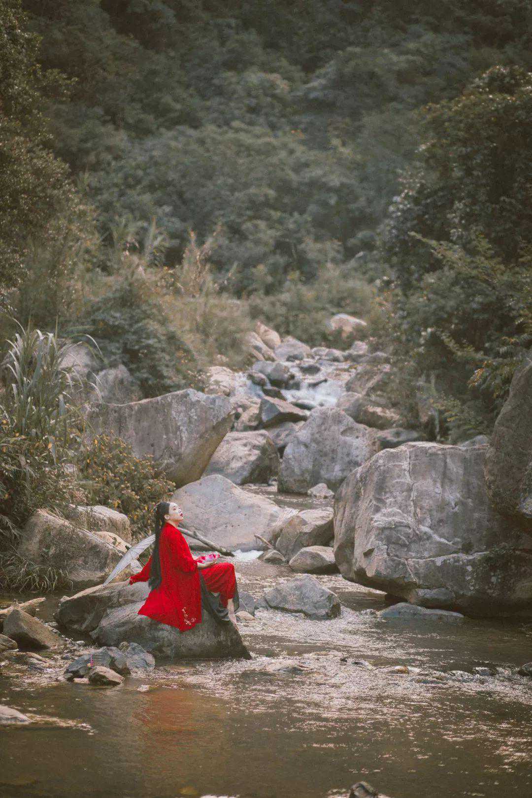 天竺山比较偏远,百竹园和游戏六的蔷薇花谷(貌似这个名字),在不同的两个门,最好是搭园内的付费游览车,景区没有门票。百竹园需要走到一个交叉路口走能登高的台阶,会有空旷的平台便于取景。蔷薇花谷水不深,拍下水可行。