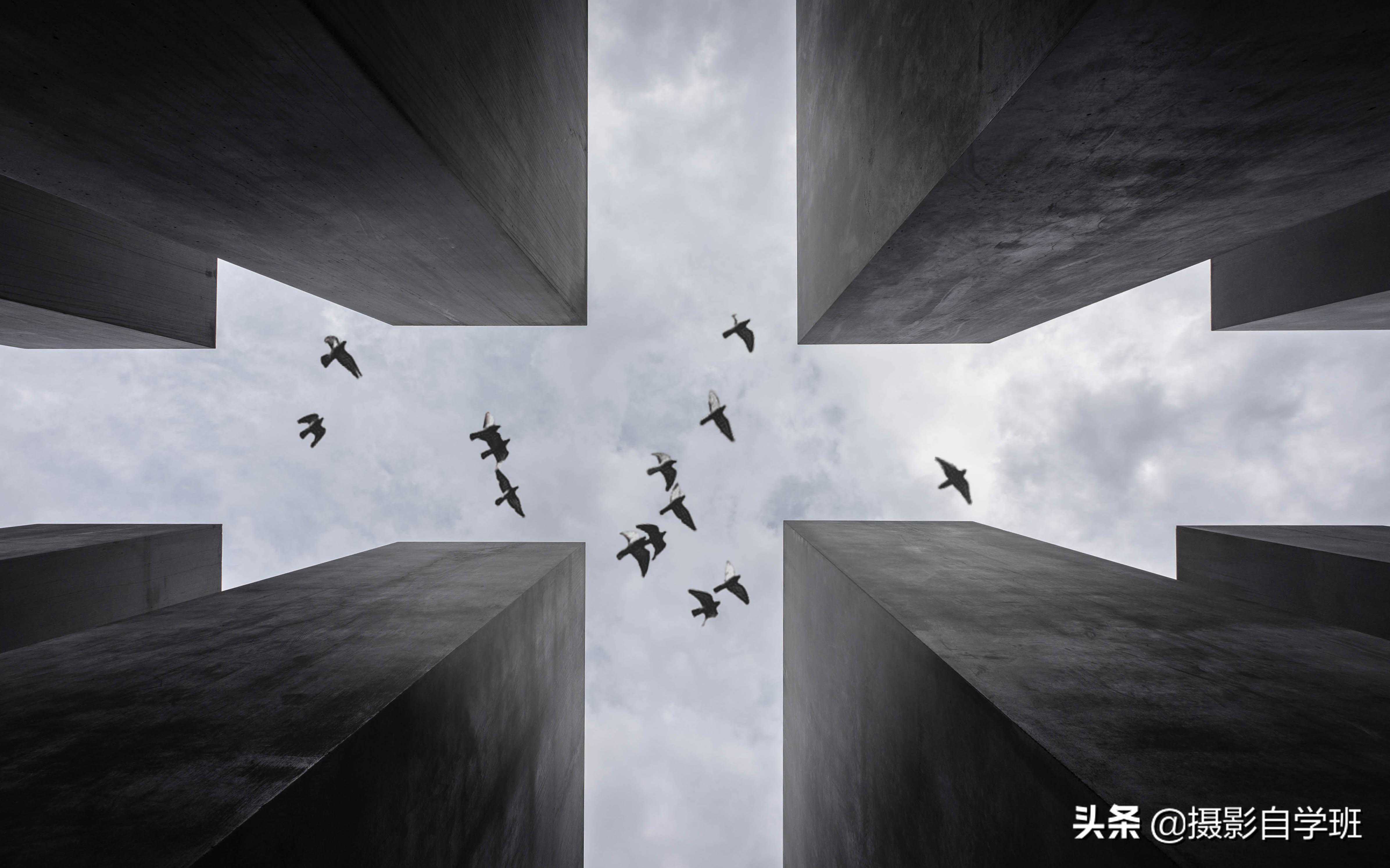 (2)每天经过的建筑,你有垂直抬头看过它吗?如果建筑比较对称,在地面的分布比较平均,那可以走到几个建筑的正中间,设备镜头垂直向上,调小光圈。手机可以用远景模式,拍它。