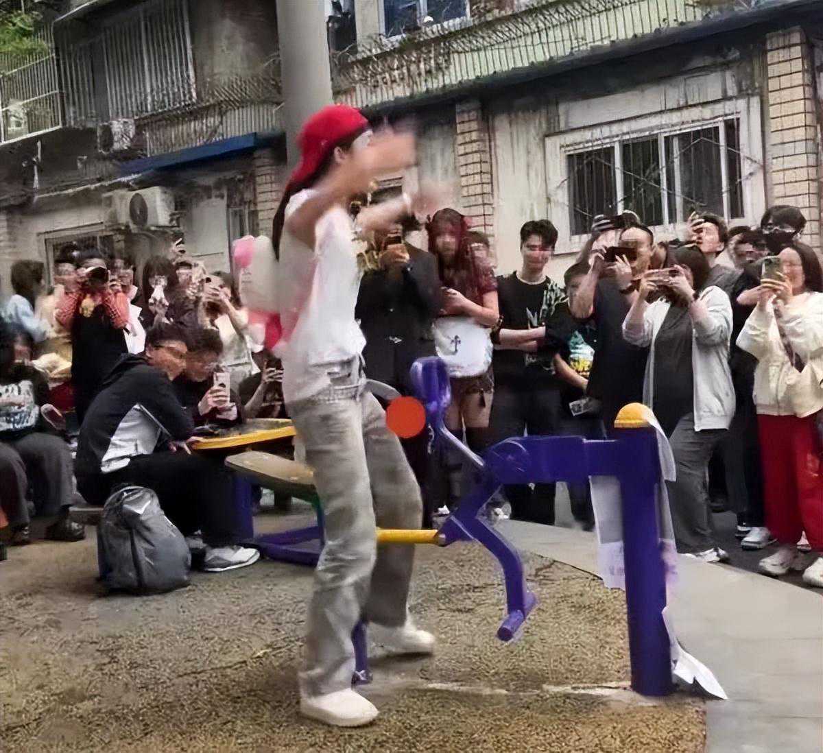 一个原本供居民平静生活的小区,当然无法承受变成景点之后的喧闹和拥挤,而且,随着热度迅速攀升,来此地“打卡”的行为也越来越过分。从白天到晚上,不断地有人坐在健身器材上大声唱rap歌词,还有人一边做动作,一边领着大家一起唱,现场宛如音乐节。周围的居民不但感到莫名其妙,而且正常生活也受到了影响,无法正常地使用健身器材,耳边还不断响起各种喧闹声,有居民表示:“都要崩溃了!”