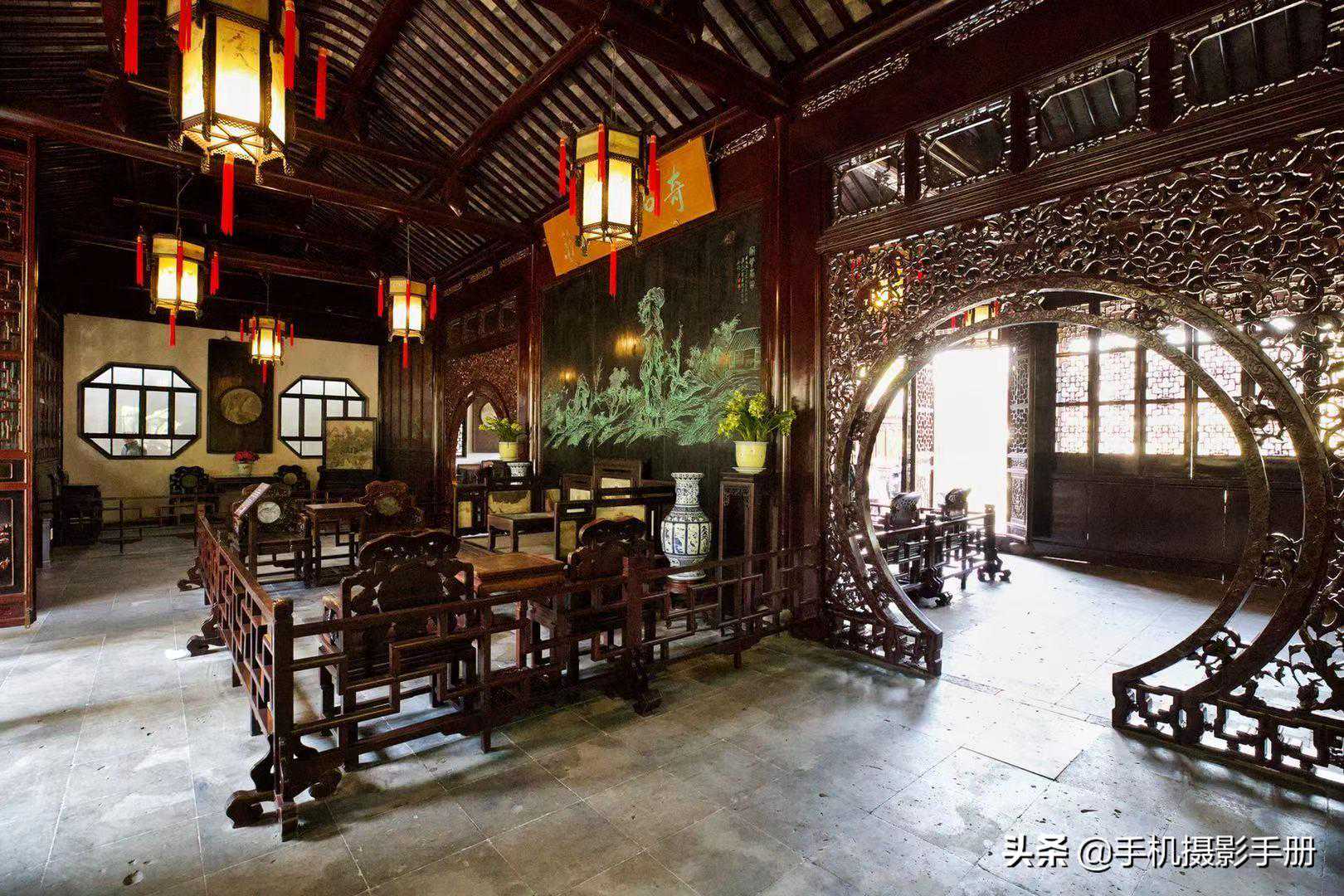 花园分为东、中、西三部分,东园开阔疏朗,中园是全园精华所在,西园建筑精美,各具特色。园南为住宅区,体现典型江南民居多进的格局。